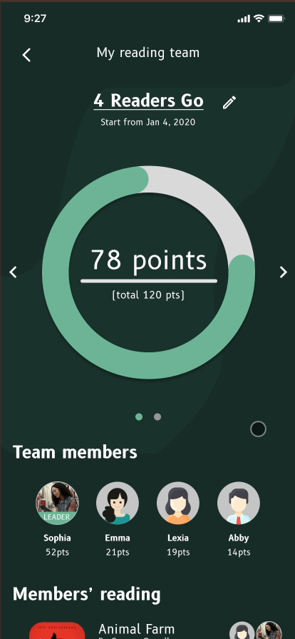 Here is the final design for Readar, including the Homepage, Reading Team, Reading Battle, Push Notifications, Reading Reports, and Rewards.